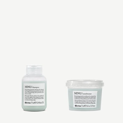 EHC MINU SH 75ML: AQUA / WATER / EAU, DISODIUM LAURETH SULFOSUCCINATE, GLYCERIN, SODIUM LAUROYL METHYL ISETHIONATE, SODIUM COCOYL ISETHIONATE, COCAMIDOPROPYL BETAINE, SODIUM LAUROYL SARCOSINATE, SODIUM LAURYL SULFOACETATE, ACRYLATES/C10-30 ALKYL ACRYLATE CROSSPOLYMER, BENZYL ALCOHOL, PANTHENOL, PHENETHYL BENZOATE, COCO-GLUCOSIDE, SODIUM METHYL 2-SULFOLAURATE, GLYCOL DISTEARATE, PPG-26-BUTETH-26, PARFUM / FRAGRANCE, SODIUM BENZOATE, GLYCERYL OLEATE, PEG-40 HYDROGENATED CASTOR OIL, DICAPRYLYL ETHER, POLYQUATERNIUM-53, POLYQUATERNIUM-7, BUTETH-3, LAURYL ALCOHOL, DISODIUM 2-SULFOLAURATE, AMODIMETHICONE/SILSESQUIOXANE COPOLYMER, GUAR HYDROXYPROPYLTRIMONIUM CHLORIDE, SODIUM BENZOTRIAZOLYL BUTYLPHENOL SULFONATE, TRISODIUM ETHYLENEDIAMINE DISUCCINATE, TETRASODIUM GLUTAMATE DIACETATE, LINALOOL, SODIUM HYDROXIDE, CITRIC ACID, TRIDECETH-5, GLYCERYL STEARATE, CAPPARIS SPINOSA FRUIT EXTRACT, SODIUM CHLORIDE, GERANIOL, PHENOXYETHANOL, ALCOHOL, TRIBUTYL CITRATE, TRIS(TETRAMETHYLHYDROXYPIPERIDINOL) CITRATE, CI 61570 / GREEN 5, CI 60730 / EXT. VIOLET 2, CI 19140 / YELLOW 5.EHC MINU COND 75ML: AQUA / WATER / EAU, CETEARYL ALCOHOL, GLYCERIN, BEHENTRIMONIUM CHLORIDE, CETYL ALCOHOL, CETRIMONIUM CHLORIDE, PHENYLPROPYLDIMETHYLSILOXYSILICATE, GLYCERYL STEARATE, BEHENETH-25, PARFUM / FRAGRANCE, SIMMONDSIA CHINENSIS SEED OIL / SIMMONDSIA CHINENSIS (JOJOBA) SEED OIL, BENZYL ALCOHOL, AMODIMETHICONE/SILSESQUIOXANE COPOLYMER, PENTAERYTHRITYL TETRA-DI-T-BUTYL HYDROXYHYDROCINNAMATE, TRIDECETH-5, HYDROXYETHYLCELLULOSE, DISODIUM EDTA, SODIUM BENZOATE, PRUNUS AMYGDALUS DULCIS OIL / PRUNUS AMYGDALUS DULCIS (SWEET ALMOND) OIL, LINALOOL, HYDROGENATED VEGETABLE OIL, TOCOPHEROL, CITRIC ACID, ALCOHOL, SCLEROTIUM GUM, CAPPARIS SPINOSA FRUIT EXTRACT, TRIS(TETRAMETHYLHYDROXYPIPERIDINOL) CITRATE, BUTYROSPERMUM PARKII BUTTER / BUTYROSPERMUM PARKII (SHEA) BUTTER, GERANIOL, PHENOXYETHANOL, CI 61570 / GREEN 5, CI 60730 / EXT. VIOLET 2, CI 19140 / YELLOW 5.